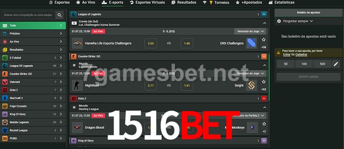 O 1516Bet oferece uma grande seleção de opções de apostas em e-sports com probabilidades competitivas
